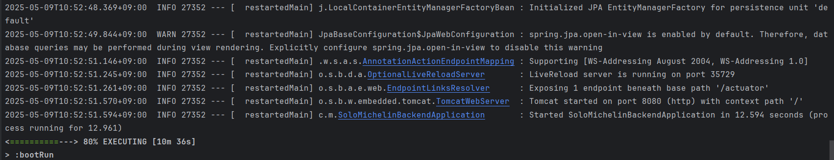 → 최종적으로 Spring Boot 애플리케이션 실행 완료.
