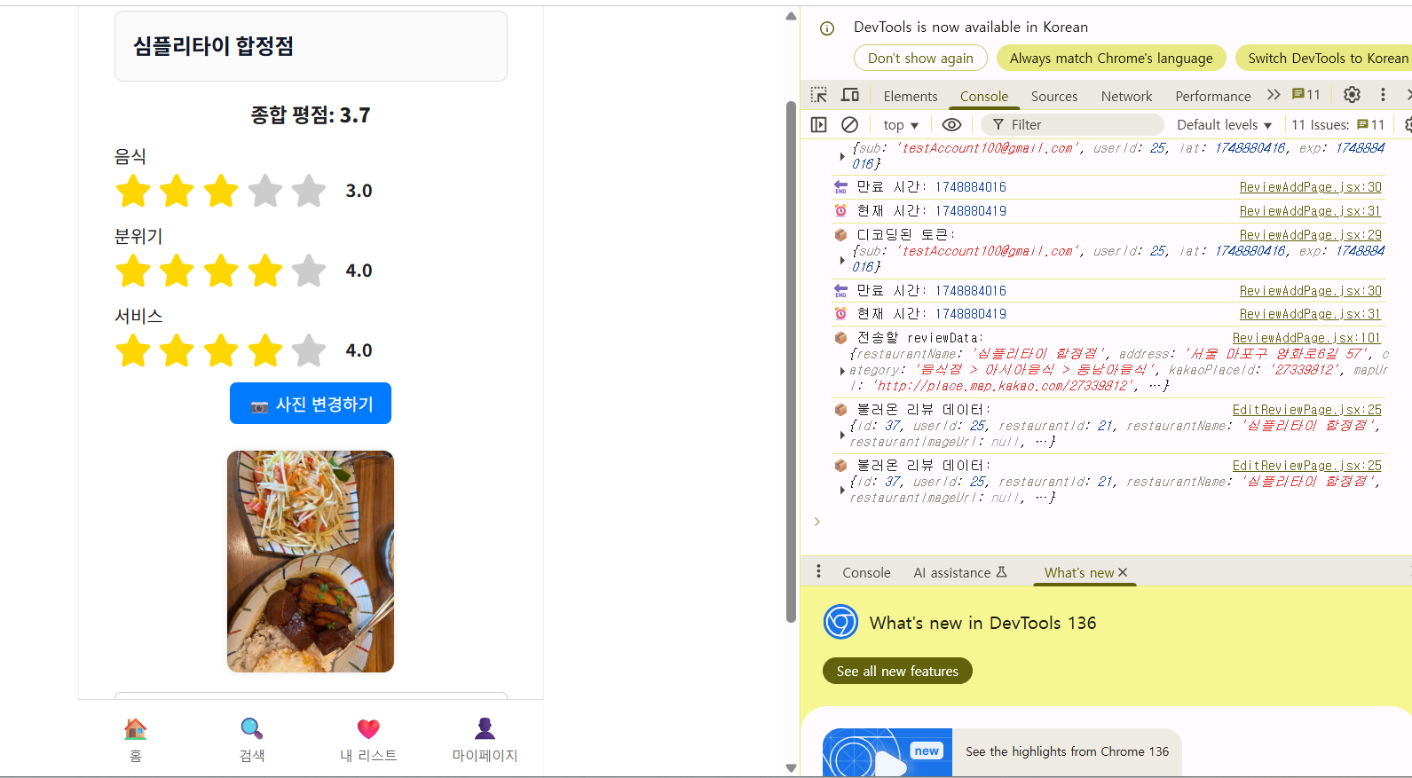 - ๋ฆฌ๋ทฐ ์์ ํ์ด์ง(EditReviewPage) ๊ฐ๋ฐ