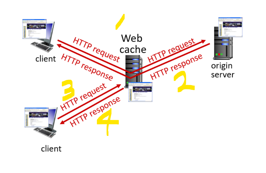 자주 요청되는 웹 콘텐츠(HTML, 이미지, 동영상 등)를 임시로 저장(caching) 해서, 다음 요청 시 원 서버(origin server)가 아니라 캐시 서버에서 바로 제공. (ex. 회사 내부 프록시 서버, ISP(인터넷 서비스 제공업체) 캐시)