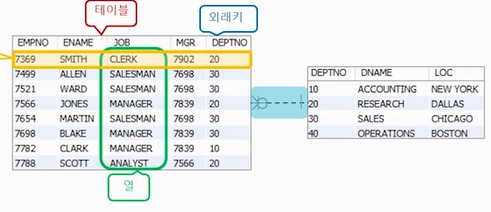 테이블 간의 관계는 Key를 이용하여 만들어진다.