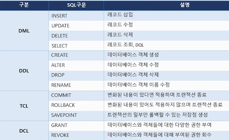 : 데이터를 정의하는 언어, 데이터를 저장할 수 있도록 구조를 만들어주는 언어