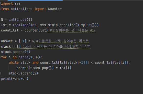 while stack and count_lst[lst[stack[-1]]] < count_lst[lst[i]]:
