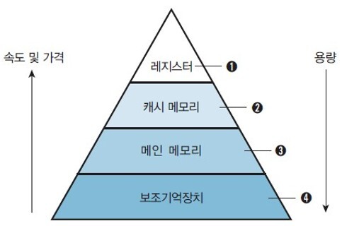 - 프로세서가 수행할 프로그램과 데이터 저장