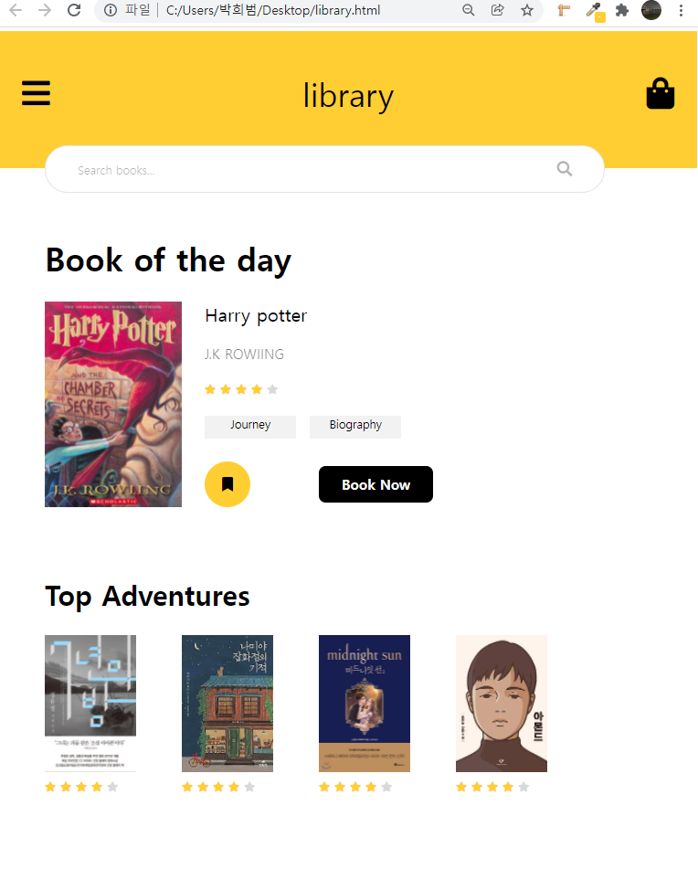 오늘은 JS없이 HTML+CSS만으로 쇼핑몰 도서코너 쪽을 반응형 웹사이트가 아닌 정적 웹사이트로 만들어보고자 한다.