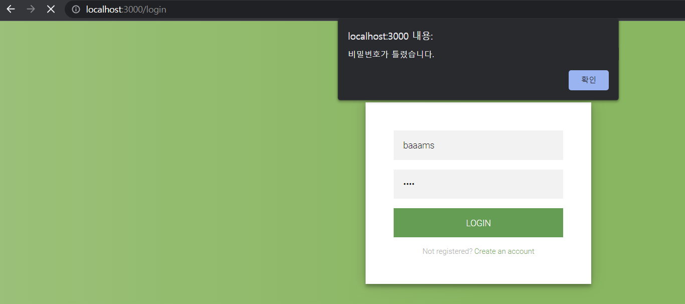 틀렸다는 메세지를 전달해준다. id 와 비밀번호가 모두 맞을 경우 success를 true로 만들어주고,