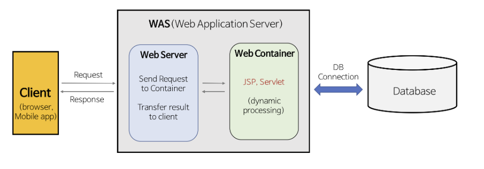 즉 WAS = Web Server + Web Container 라고 보면 이해하기 쉽다.