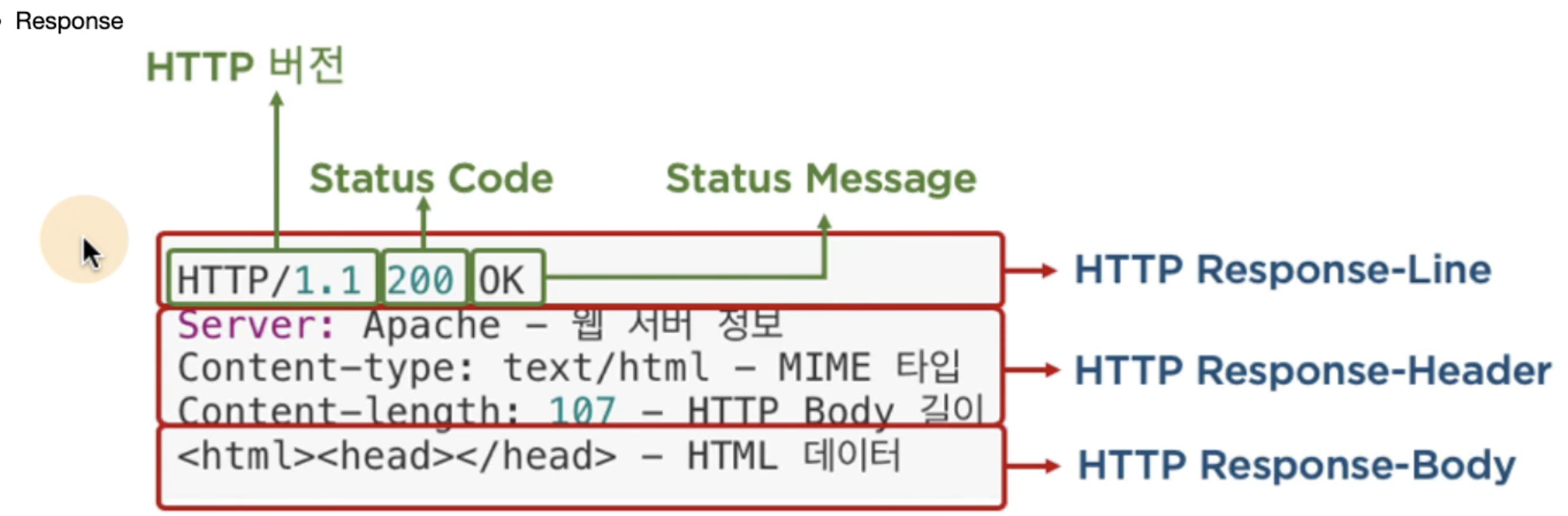 response는 버전을 시작으로 스테이터스 코드, 메세지와 함께 여러 데이터들을 받을 수 있다.