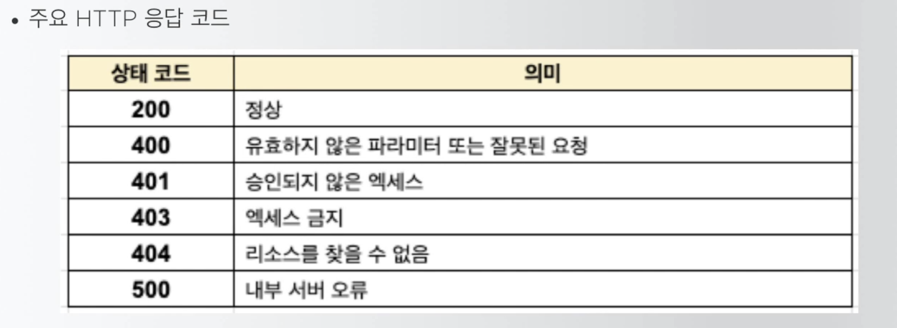 끝으로 자주 쓰이는 HTTP 응답코드를 한번 더 확인하고 이정도는 머리속에 암기해두는 것이 좋아보인다.