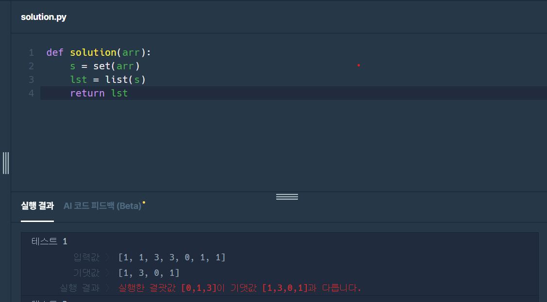 Approach : 중복 숫자를 지우면서 순서를 유지하는 문제인데, 단순하게 중복을 지우는 세트로 바꾸고 리스트로 다시 만들어주면..